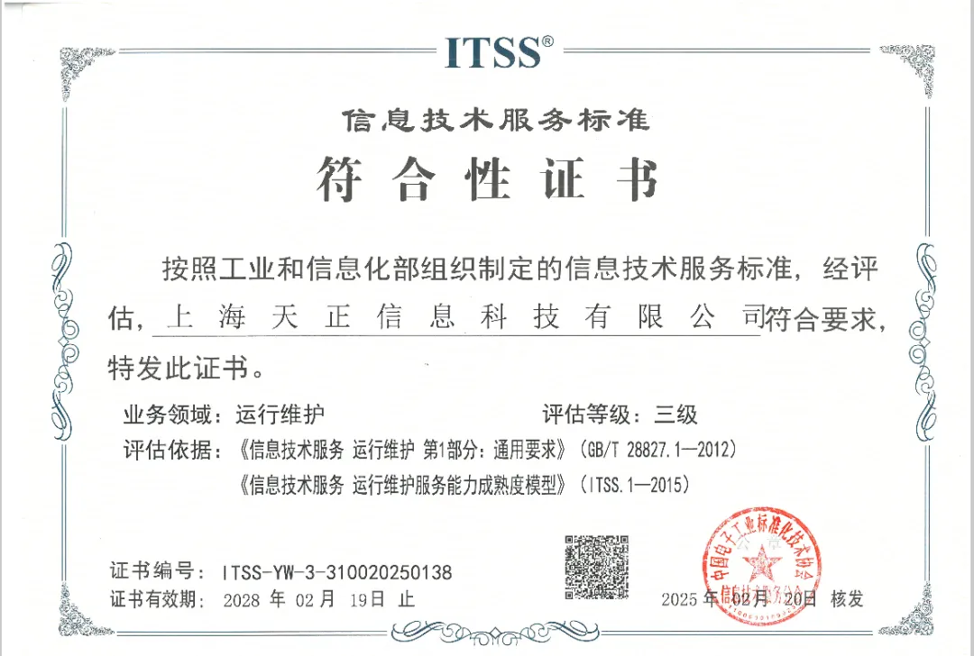 03-18◎喜報(bào)!熱烈慶祝天正信息成功通過ITSS三級(jí)認(rèn)證,邁向服務(wù)新高度!
