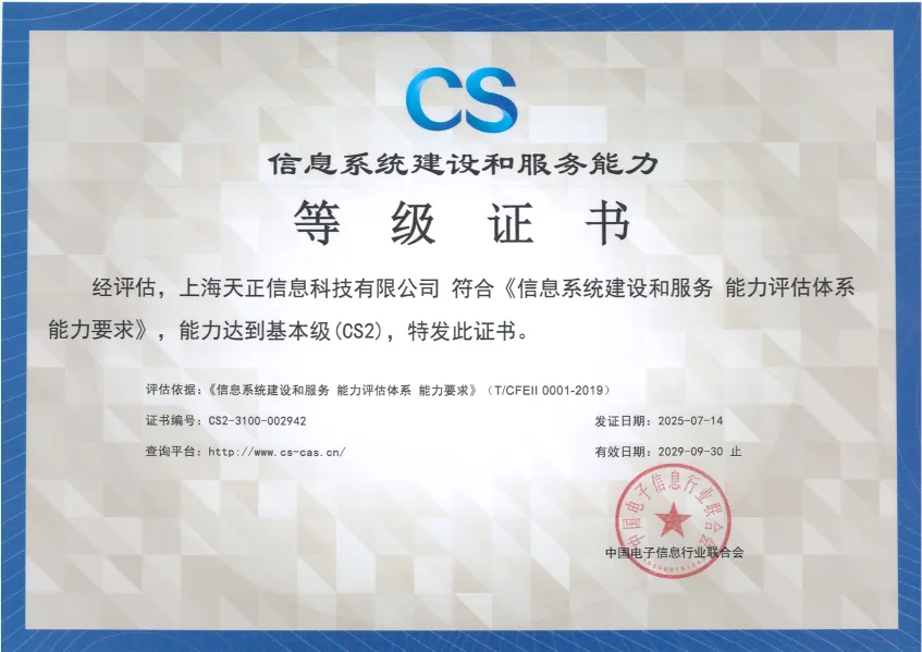 07-21◎祝賀上海天正信息榮獲CS二級(jí)證書!